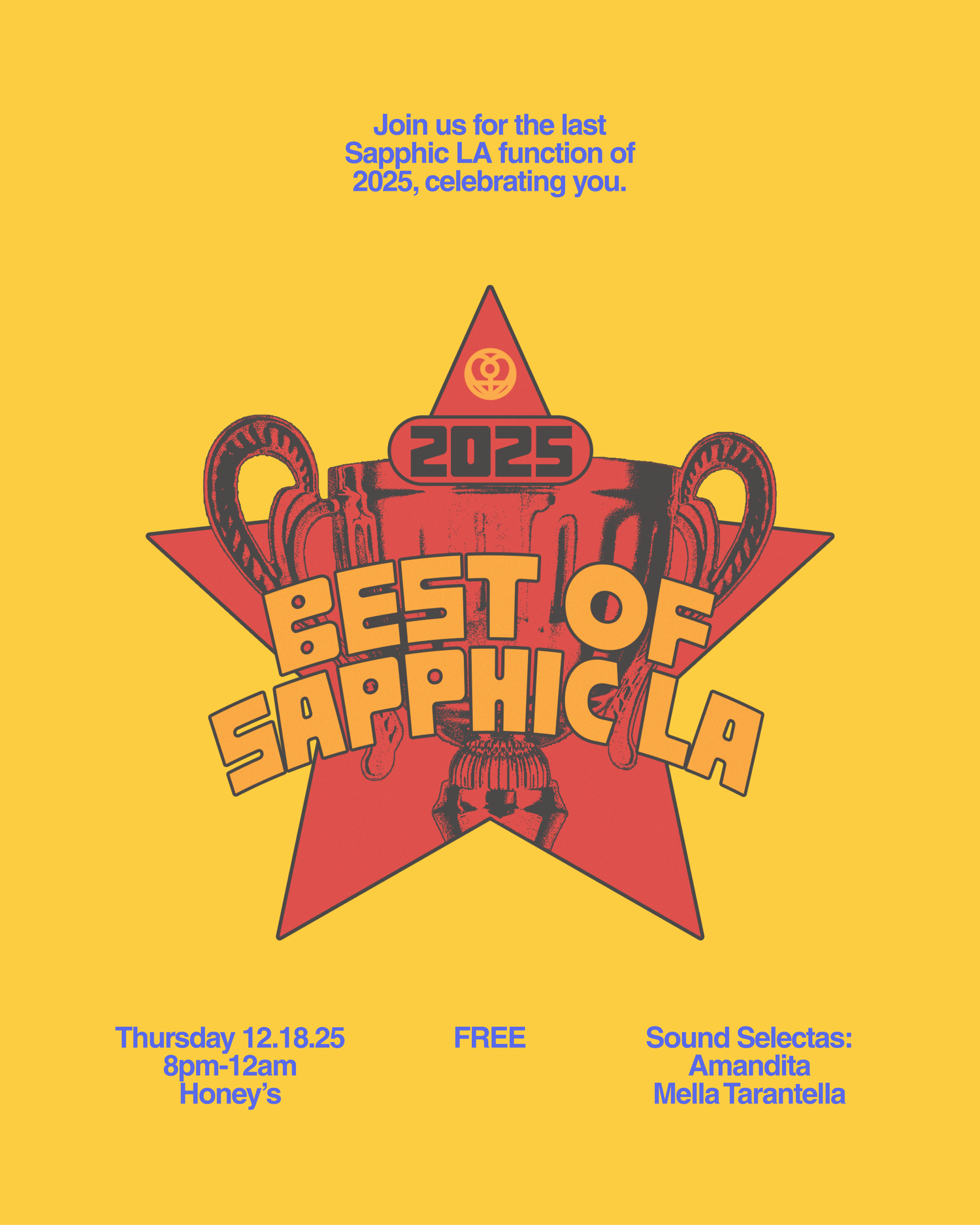 Join us on December 18 for the last Sapphic LA function of 2025, celebrating you. Come cheers to our community and all who have helped facilitate sapphic joy, healing and connection across the city. This is not a ceremony, it's a party!