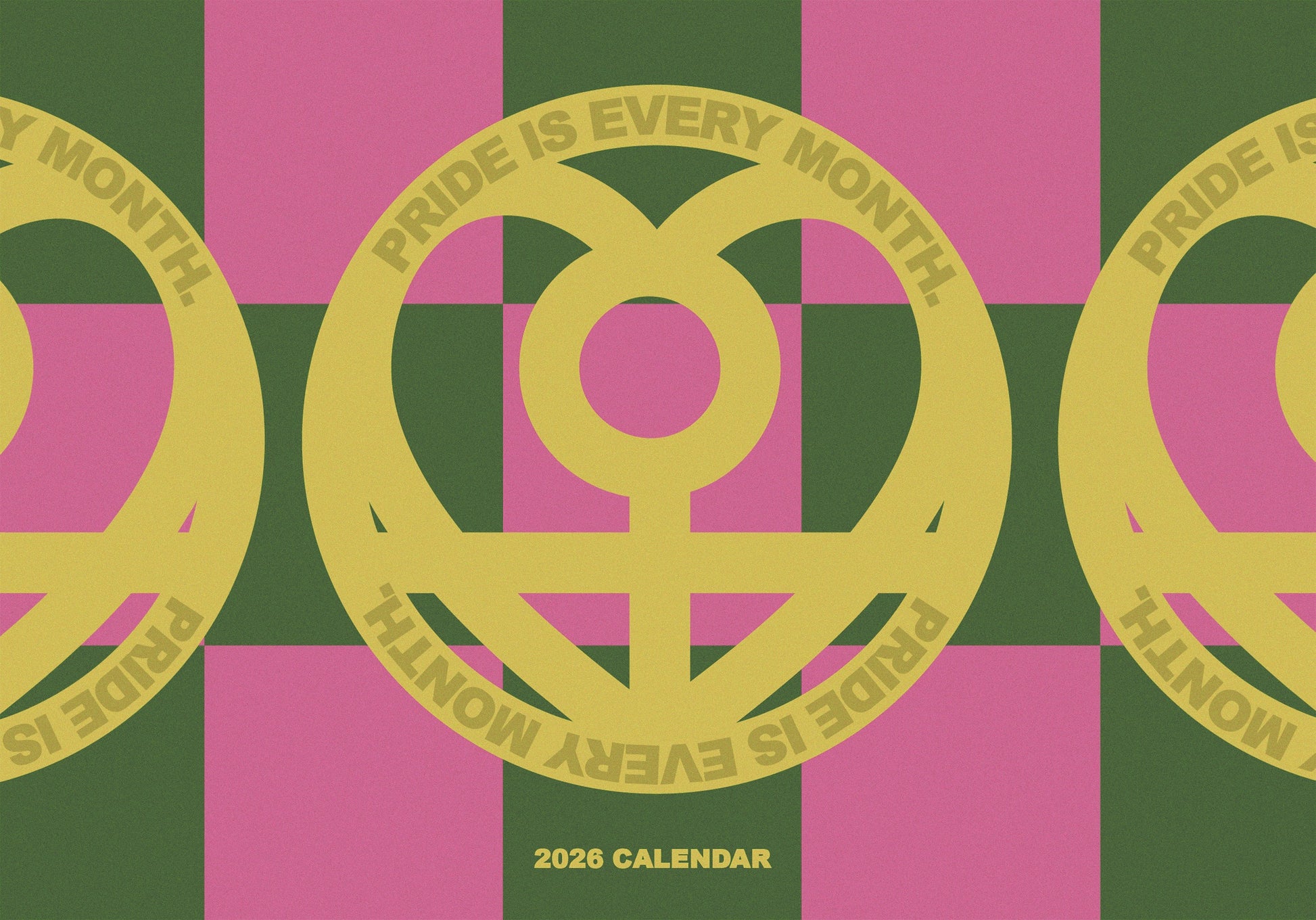 A vibrant, A5 wall calendar for 2026, designed by Tina Tona to celebrate queer joy and community. Pre-order now for an estimated November delivery.